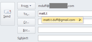 I typed the first few letters of the recipient’s email address, pressed the down arrow on my keyboard, then pressed the Delete key. Then, I manually re-typed the recipient’s full email address, and my email sent without any problems.
